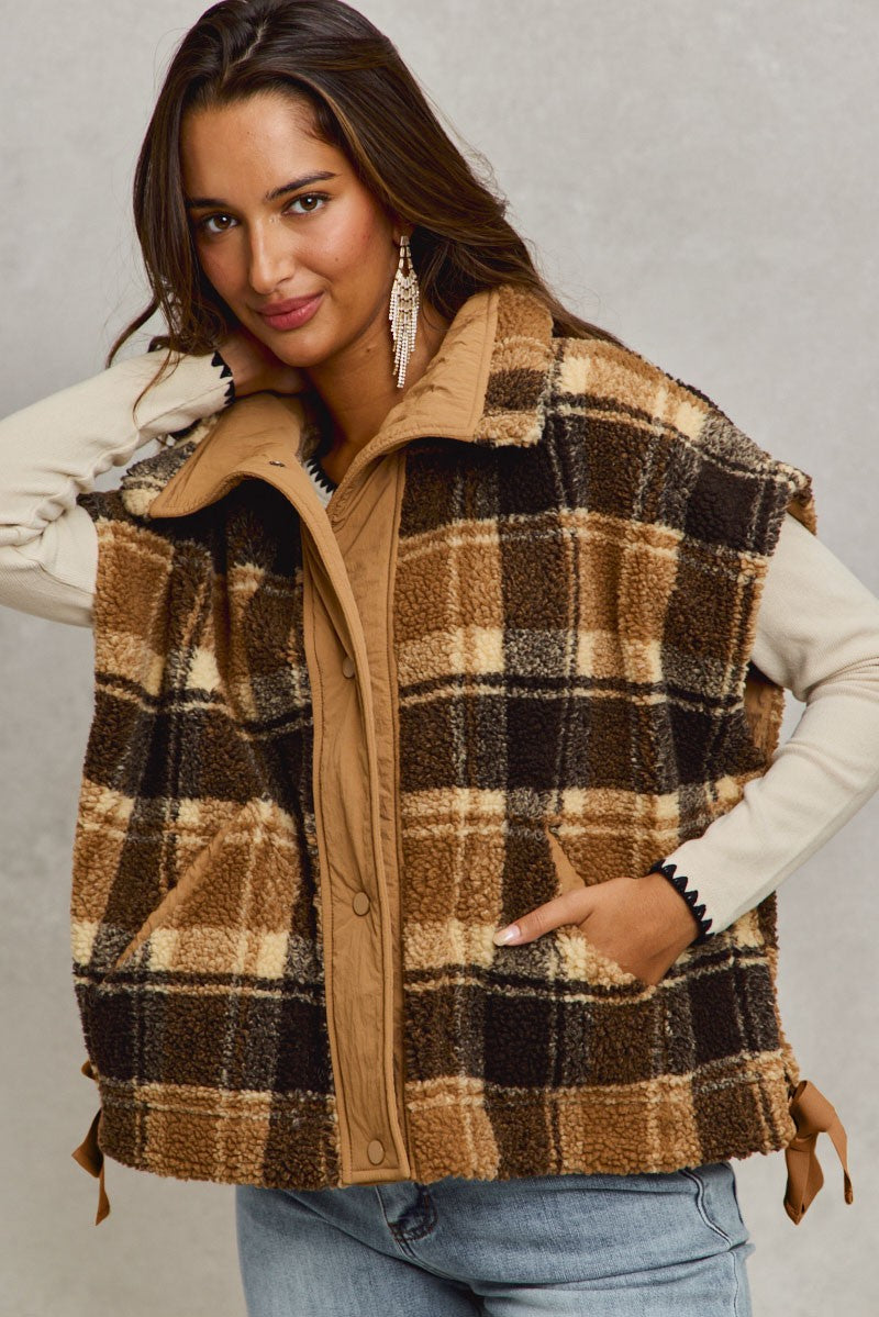 Plaid Sherpa Faux Oversized Vest Jacket |